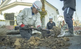 掘削した場所を埋め戻します。重機で砂や砂利を戻し、機械を使用し締固めます。